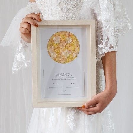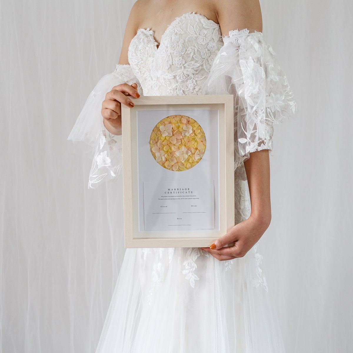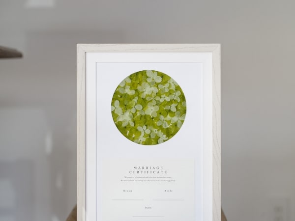 お二人とゲストが一緒に作り上げた結婚証明書は、